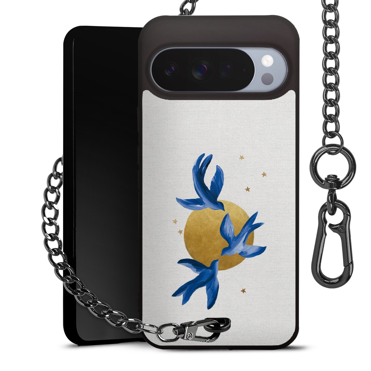 • Mattschwarze Handyhülle mit Metallkette