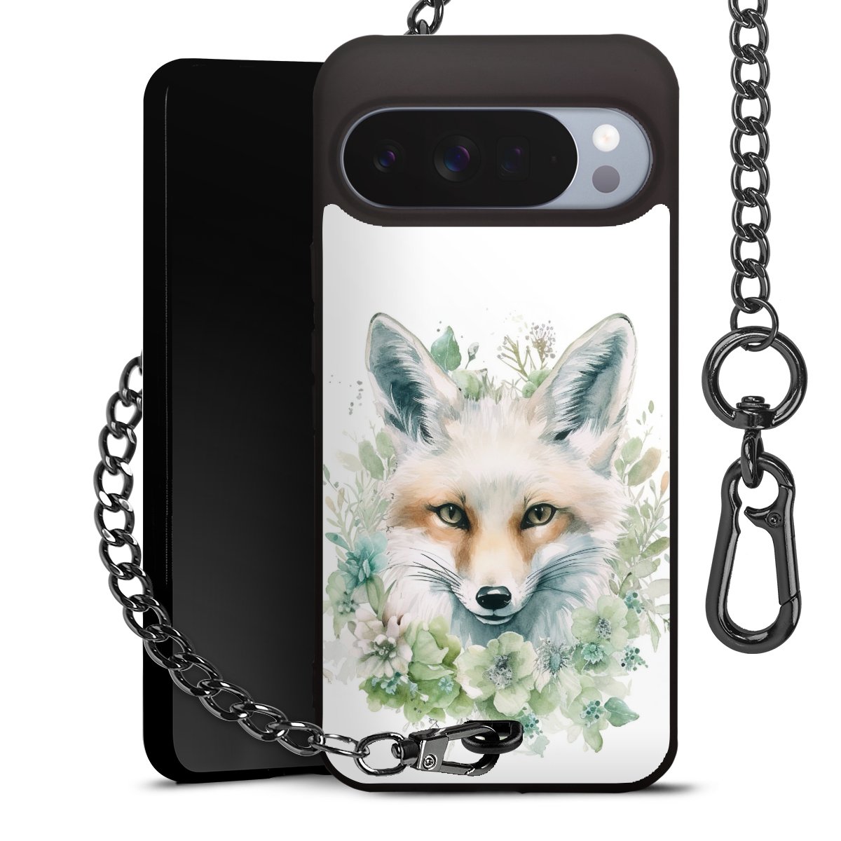 • Mattschwarze Handyhülle mit Metallkette