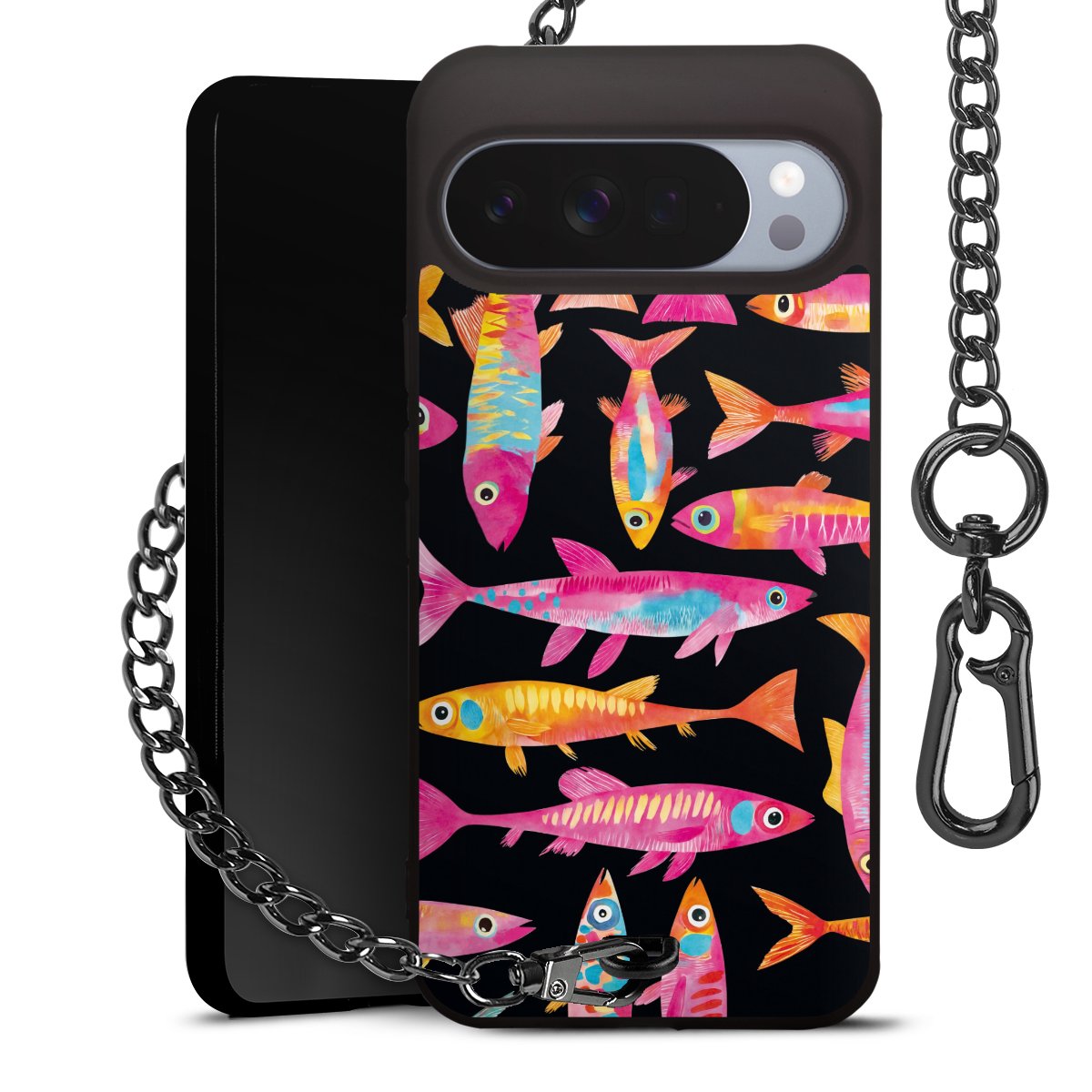 • Mattschwarze Handyhülle mit Metallkette