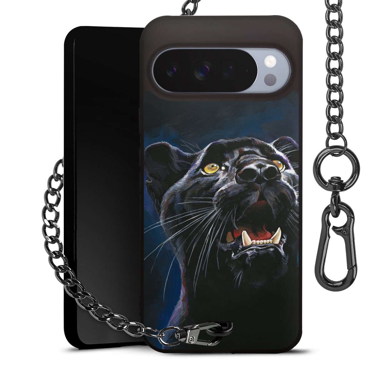 • Mattschwarze Handyhülle mit Metallkette