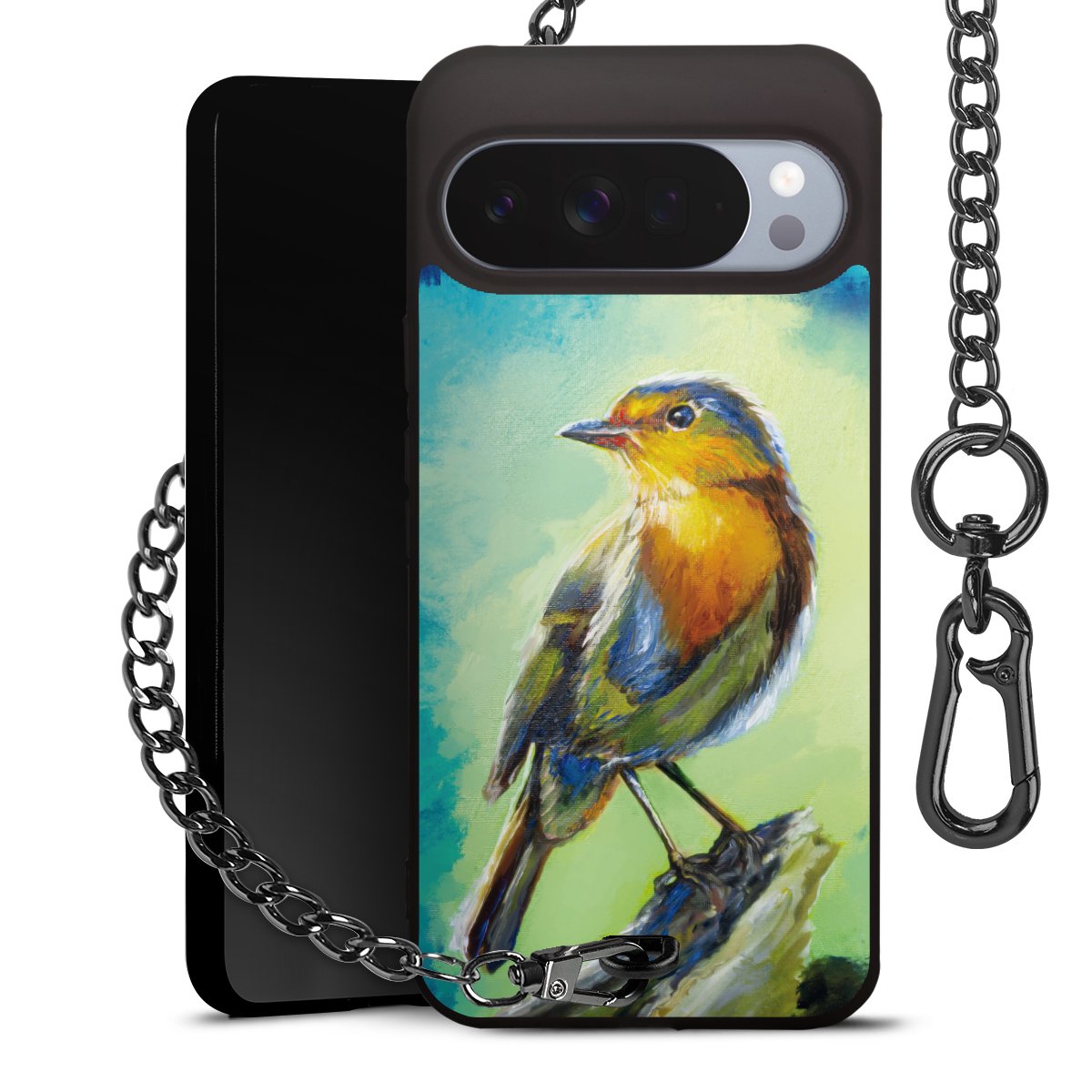 • Mattschwarze Handyhülle mit Metallkette
