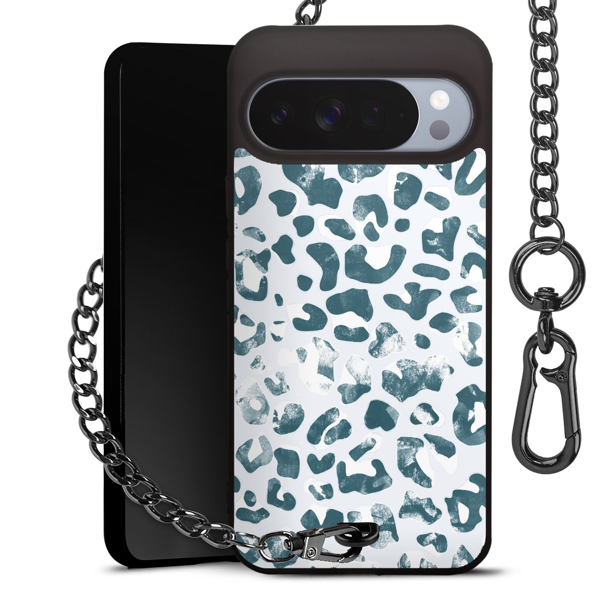 • Mattschwarze Handyhülle mit Metallkette
