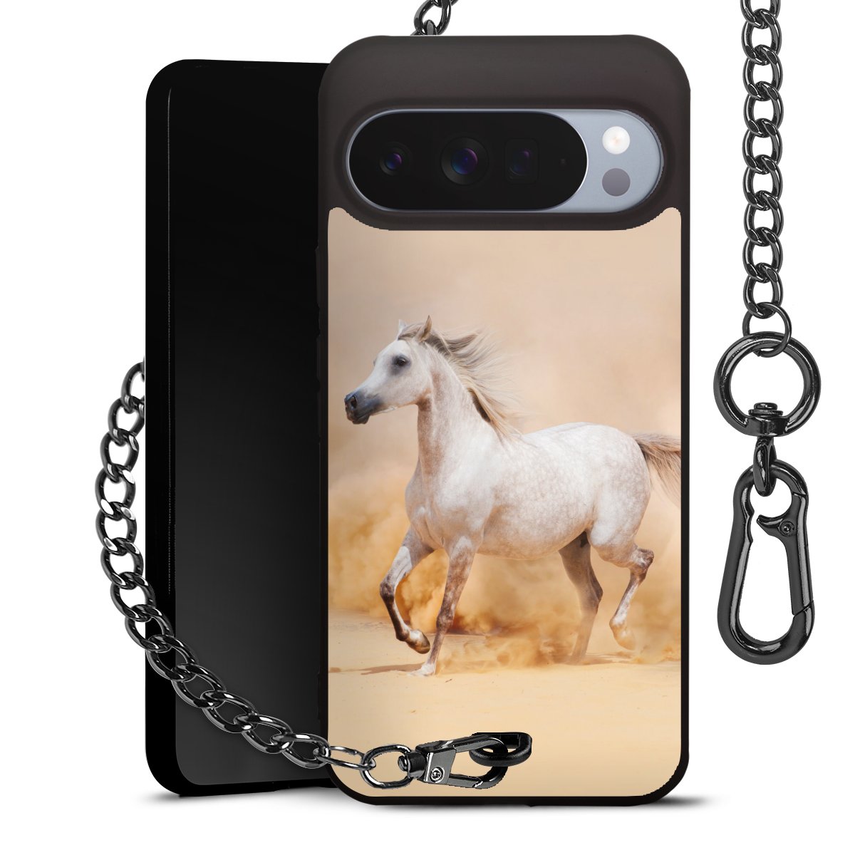 • Mattschwarze Handyhülle mit Metallkette