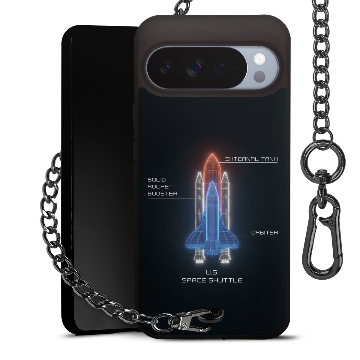 • Mattschwarze Handyhülle mit Metallkette