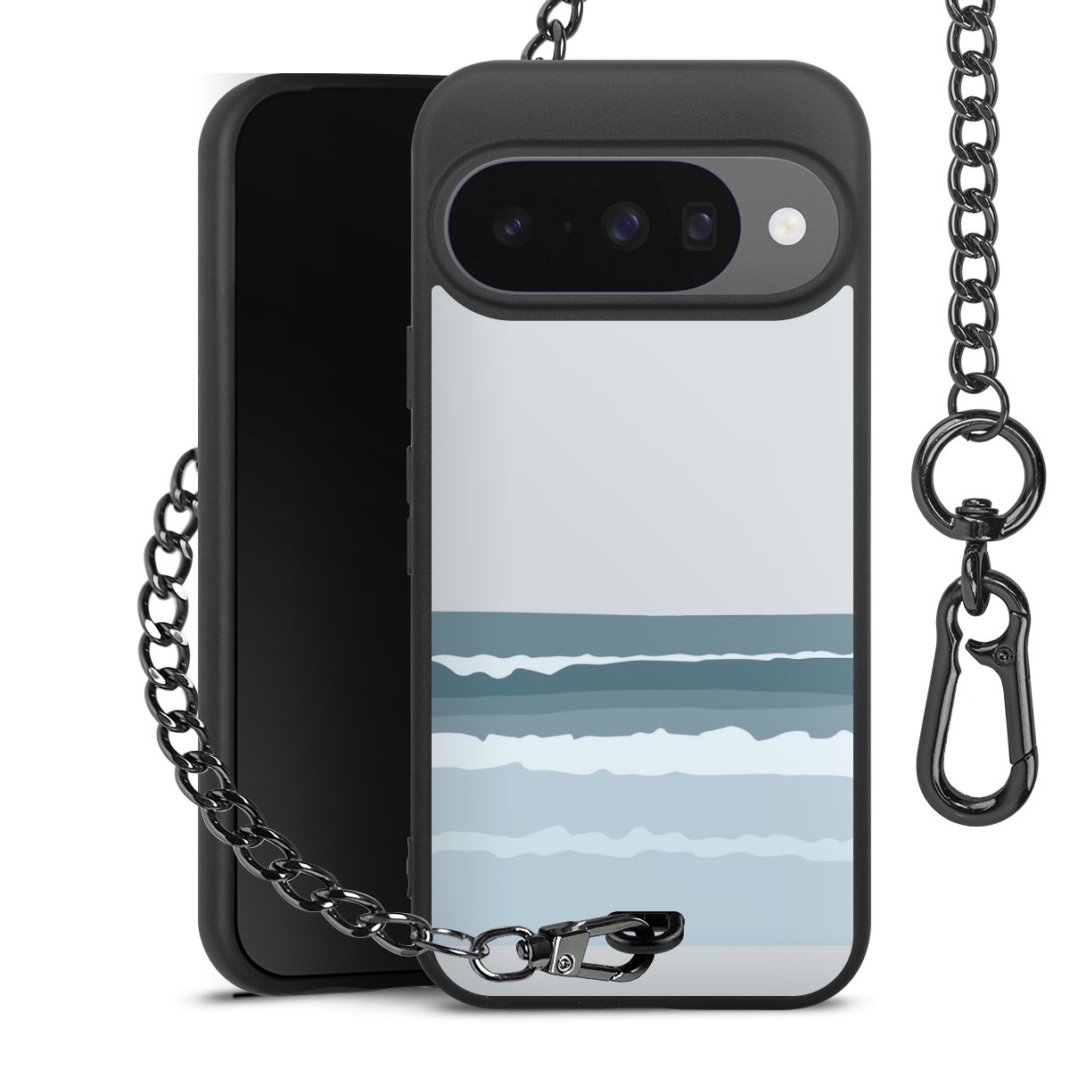 - Mattschwarze Handyhülle mit Metallkette