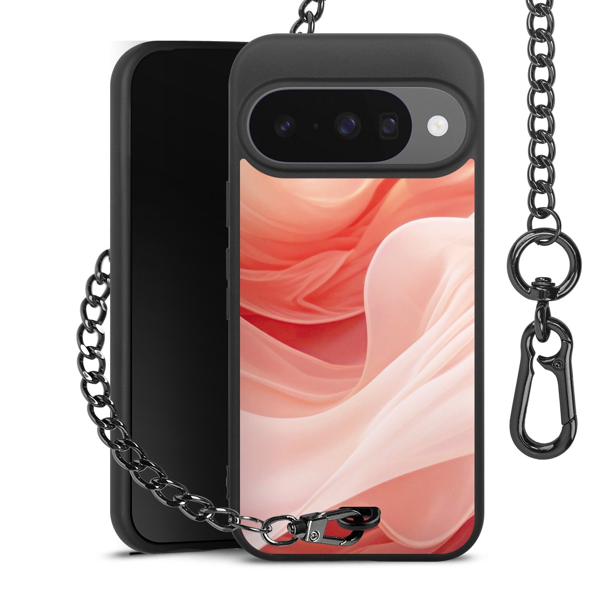 • Mattschwarze Handyhülle mit Metallkette