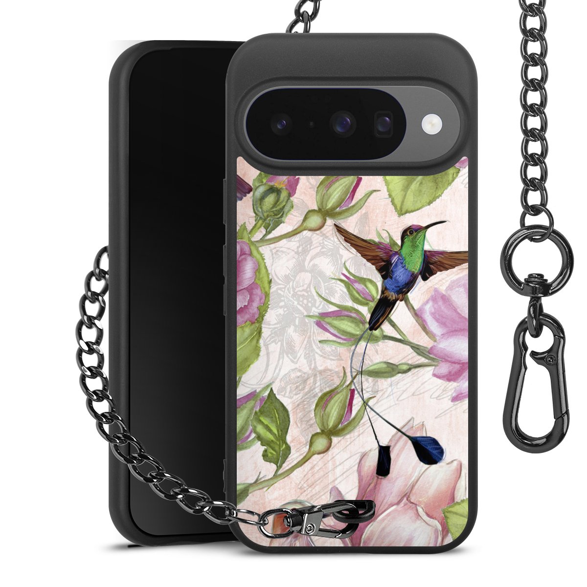 • Mattschwarze Handyhülle mit Metallkette
