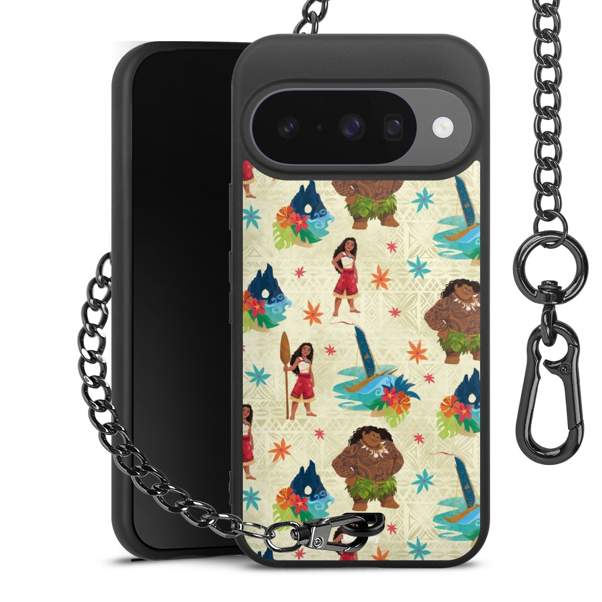 • Mattschwarze Handyhülle mit Metallkette