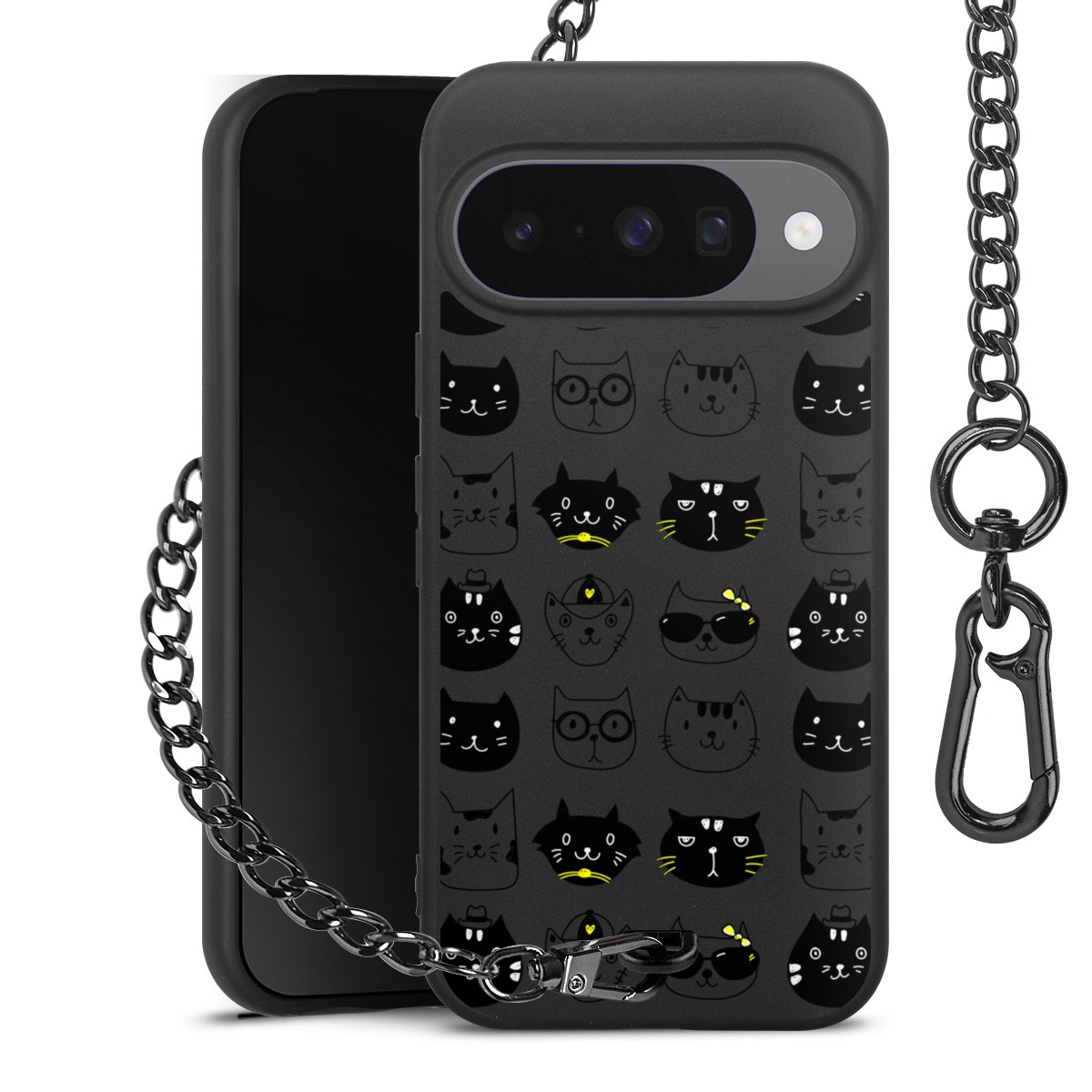- Mattschwarze Handyhülle mit Metallkette