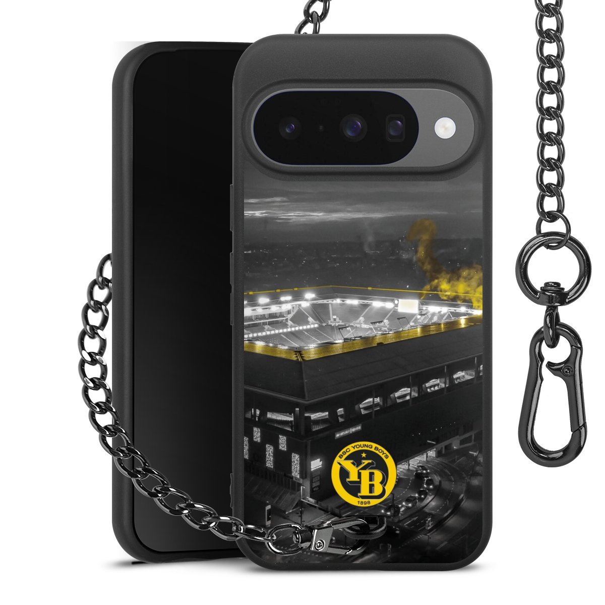 Die mattschwarze Silikon-Handyhülle besteht aus robustem TPU (thermoplastisches Polyurethan). Sie ist flexibel und schützt Dein Smartphone vor Stößen und Kratzern. Die Kette sowie der Karabinerhaken sind aus Metall in Gunmetal-Optik gefertigt. Für dieses Produkt kommen ausschließlich TÜV-geprüfte Materialien zum Einsatz.