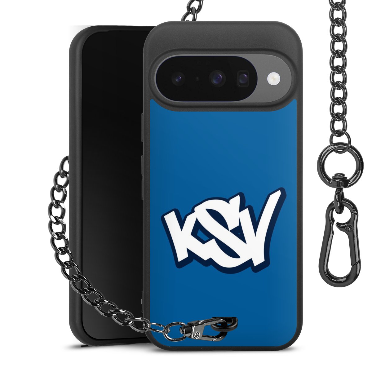 - Mattschwarze Handyhülle mit Metallkette