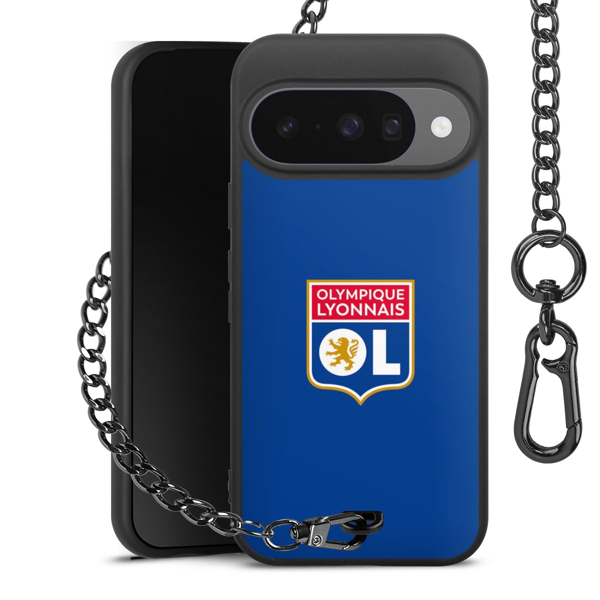 • Mattschwarze Handyhülle mit Metallkette