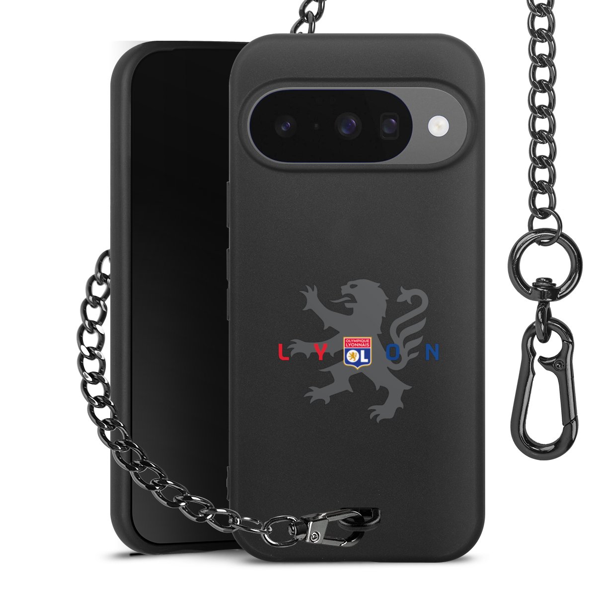 • Mattschwarze Handyhülle mit Metallkette