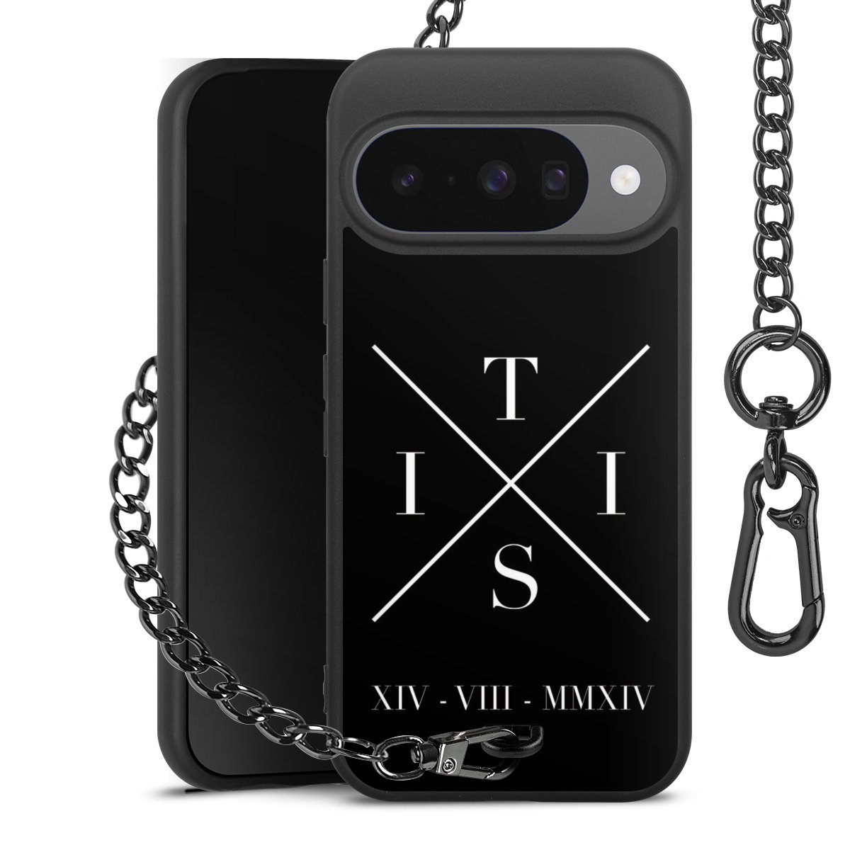 • Mattschwarze Handyhülle mit Metallkette