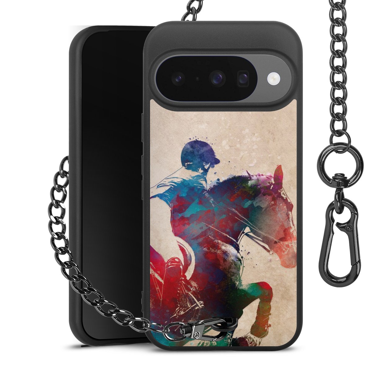• Mattschwarze Handyhülle mit Metallkette