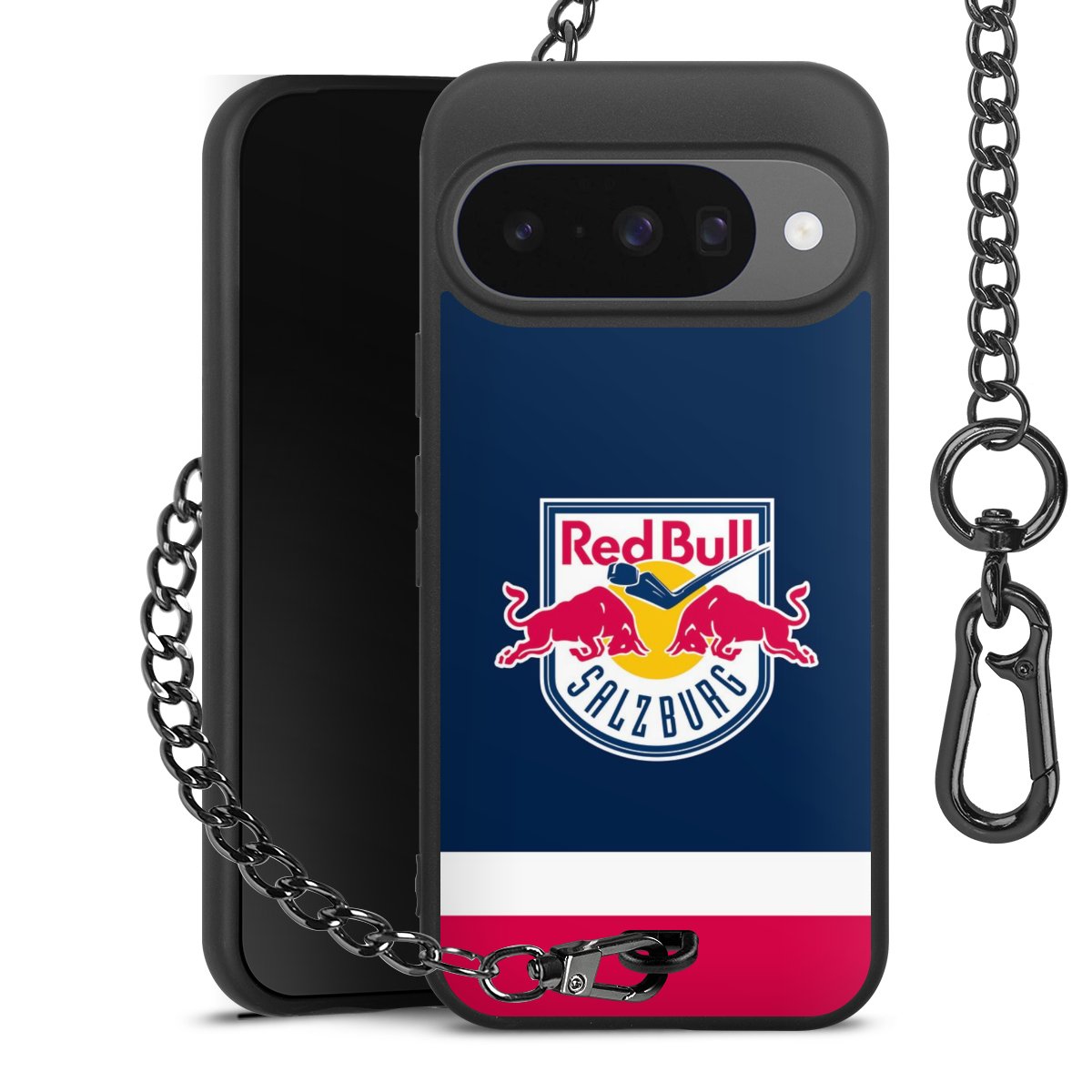 • Mattschwarze Handyhülle mit Metallkette
