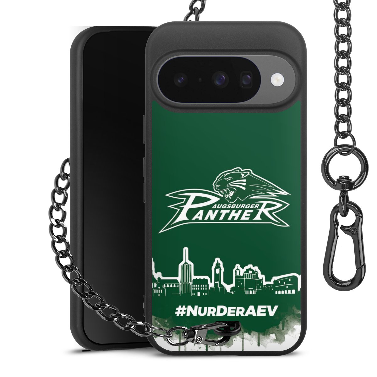 Die mattschwarze Silikon-Handyhülle besteht aus robustem TPU (thermoplastisches Polyurethan). Sie ist flexibel und schützt Dein Smartphone vor Stößen und Kratzern. Die Kette sowie der Karabinerhaken sind aus Metall in Gunmetal-Optik gefertigt. Für dieses Produkt kommen ausschließlich TÜV-geprüfte Materialien zum Einsatz.