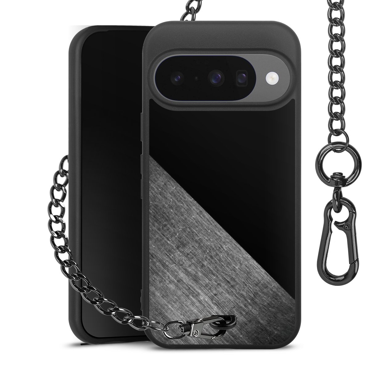 - Mattschwarze Handyhülle mit Metallkette