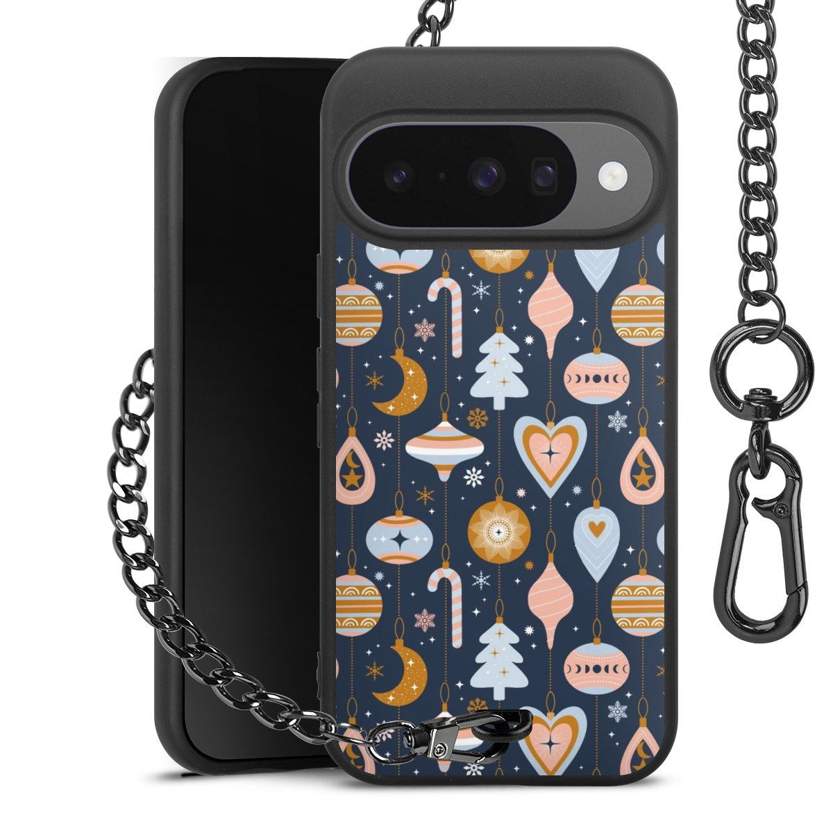 • Mattschwarze Handyhülle mit Metallkette