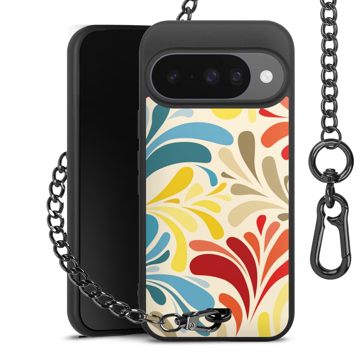 - Mattschwarze Handyhülle mit Metallkette