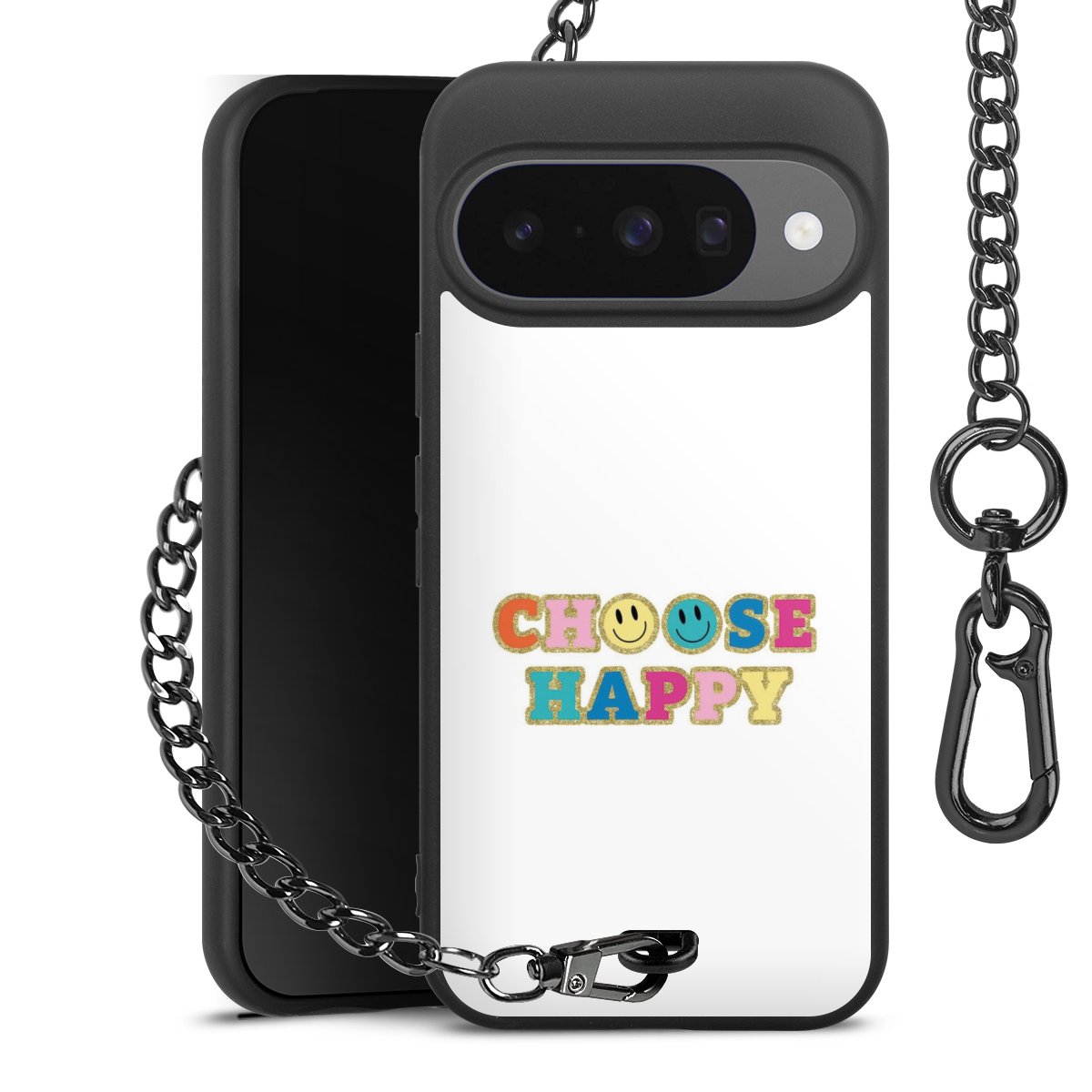 • Mattschwarze Handyhülle mit Metallkette