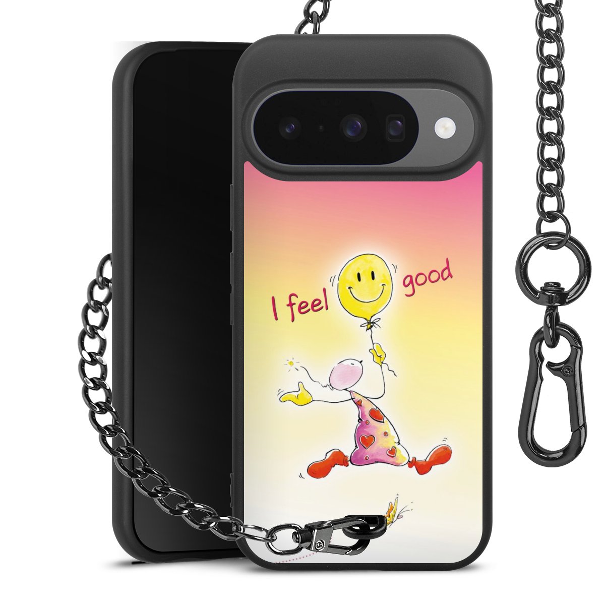 Die mattschwarze Silikon-Handyhülle besteht aus robustem TPU (thermoplastisches Polyurethan). Sie ist flexibel und schützt Dein Smartphone vor Stößen und Kratzern. Die Kette sowie der Karabinerhaken sind aus Metall in Gunmetal-Optik gefertigt. Für dieses Produkt kommen ausschließlich TÜV-geprüfte Materialien zum Einsatz.