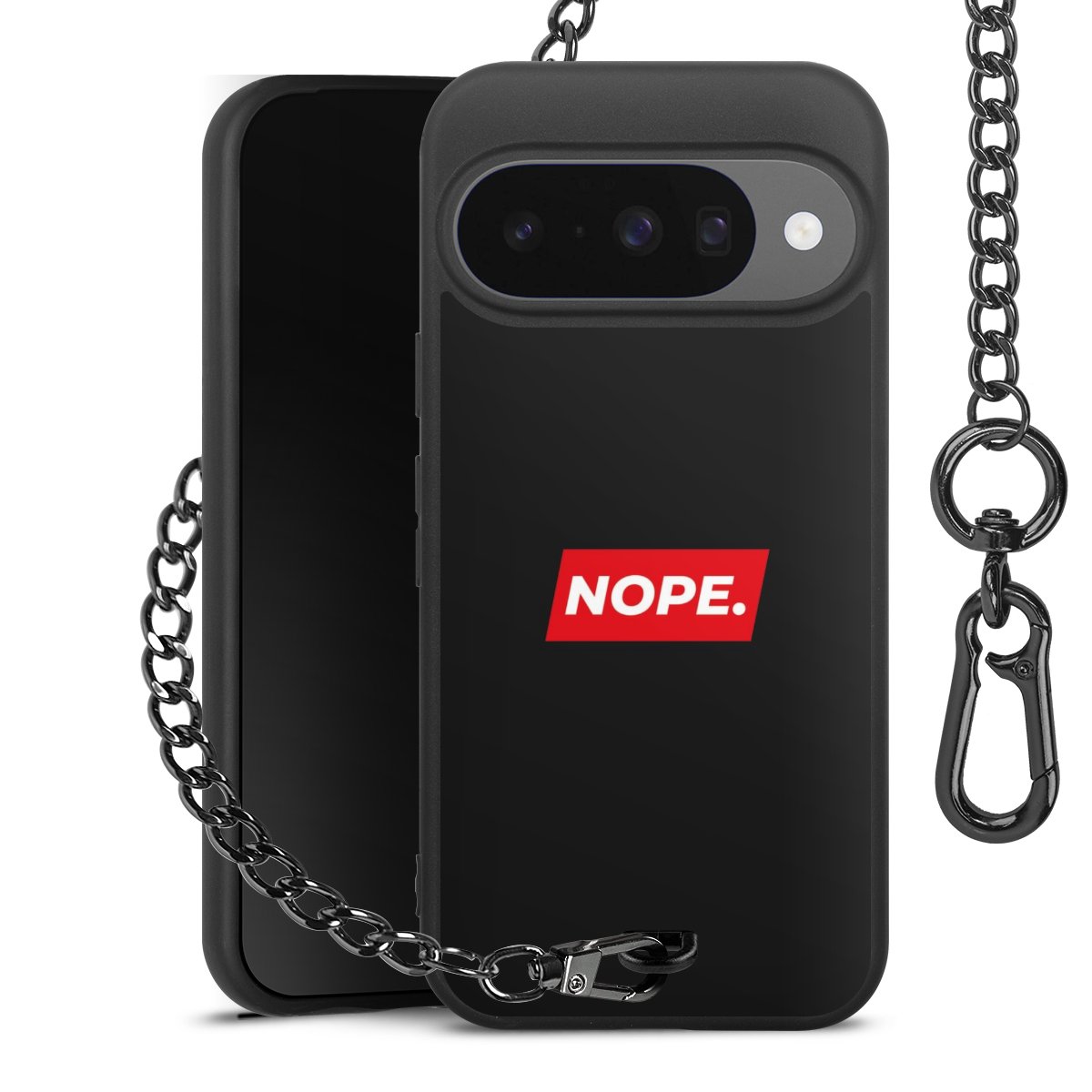• Mattschwarze Handyhülle mit Metallkette