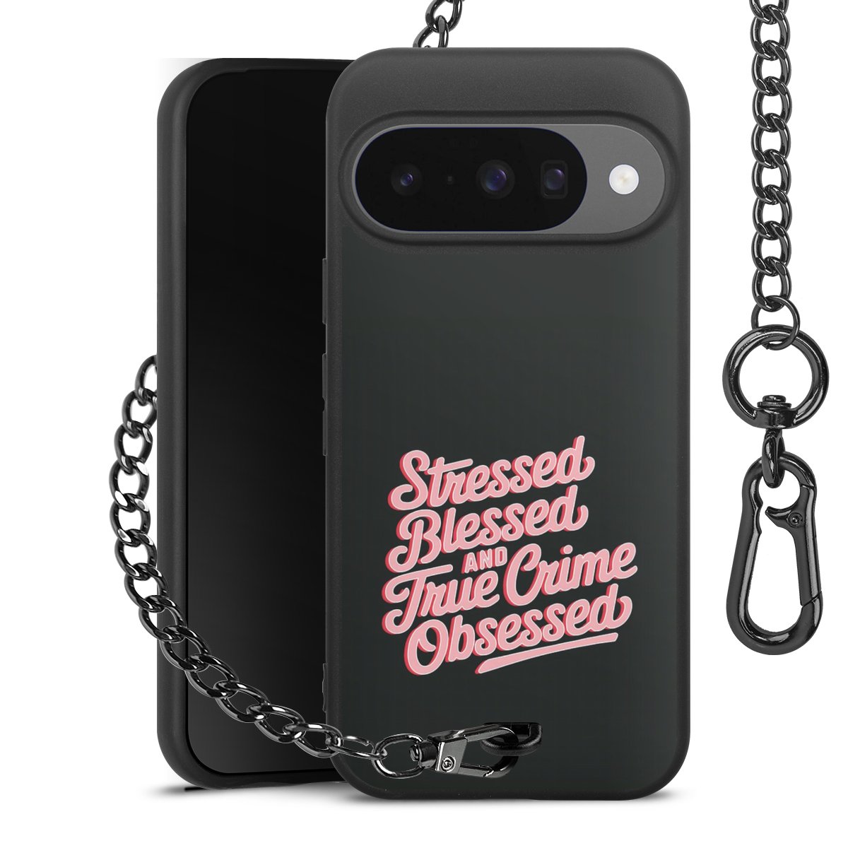 • Mattschwarze Handyhülle mit Metallkette