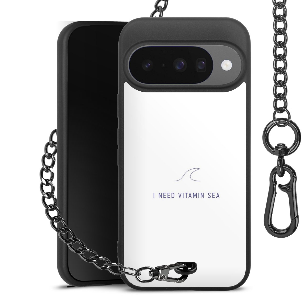 - Mattschwarze Handyhülle mit Metallkette