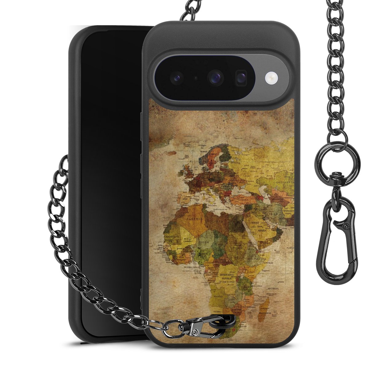 - Mattschwarze Handyhülle mit Metallkette
