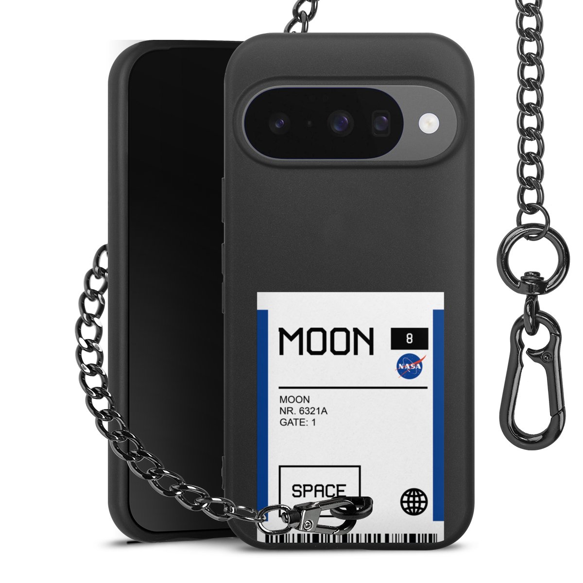 - Mattschwarze Handyhülle mit Metallkette
