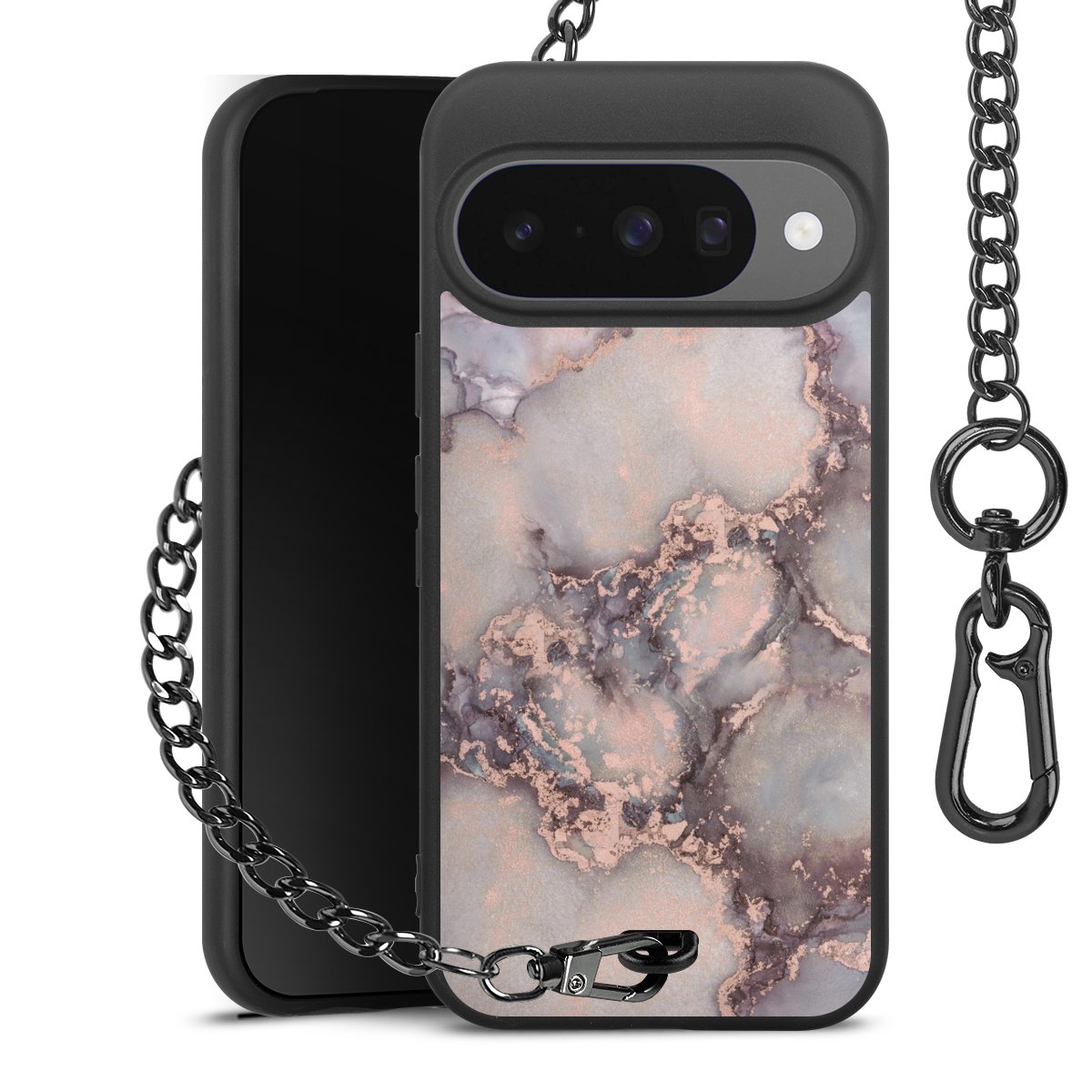 • Mattschwarze Handyhülle mit Metallkette