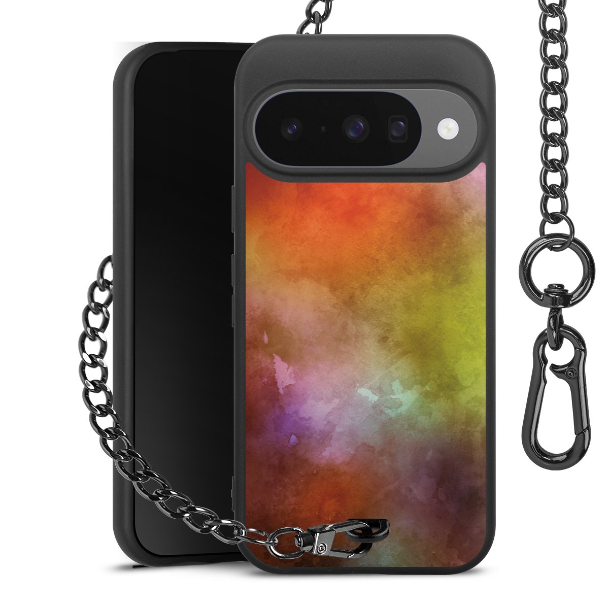 • Mattschwarze Handyhülle mit Metallkette
