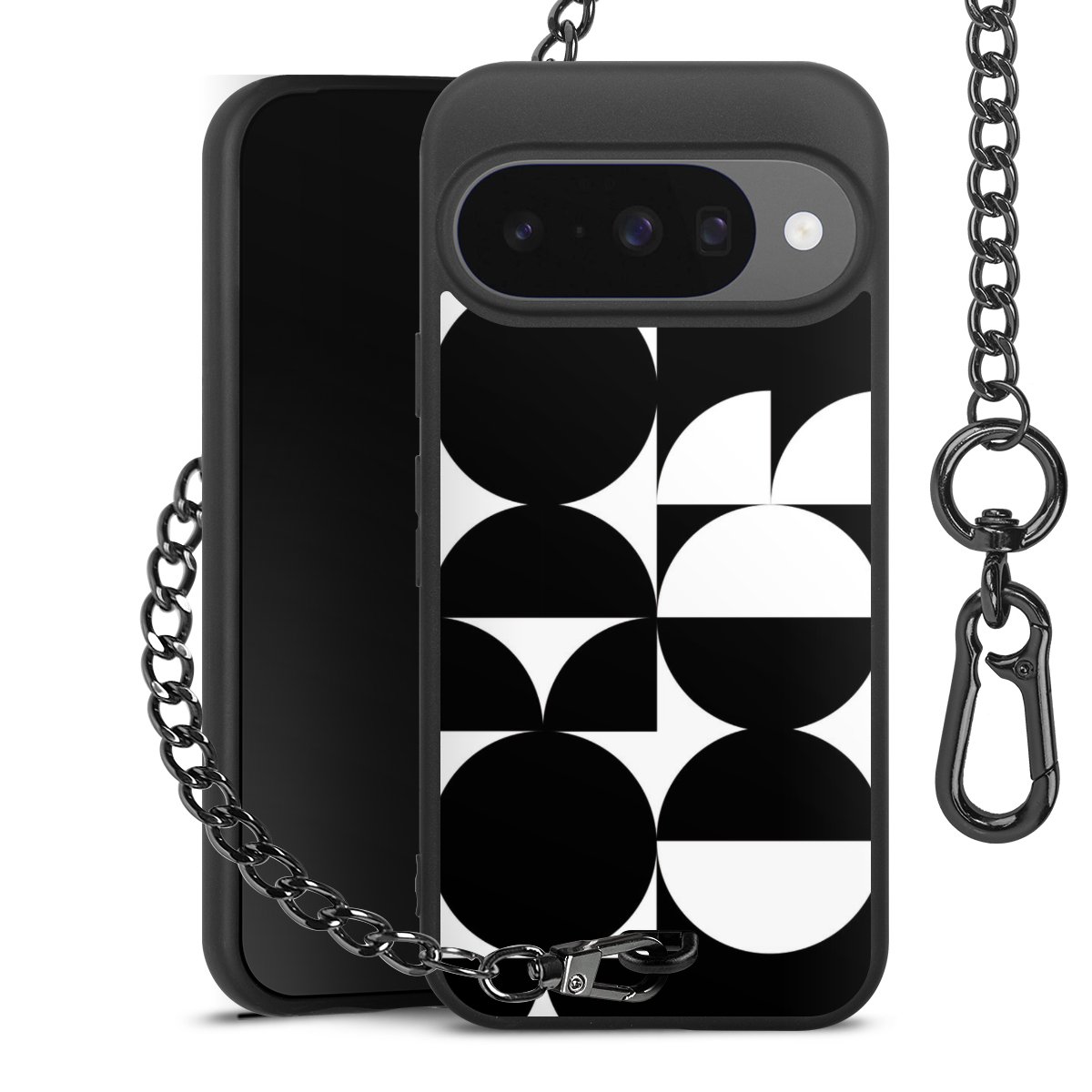 - Mattschwarze Handyhülle mit Metallkette