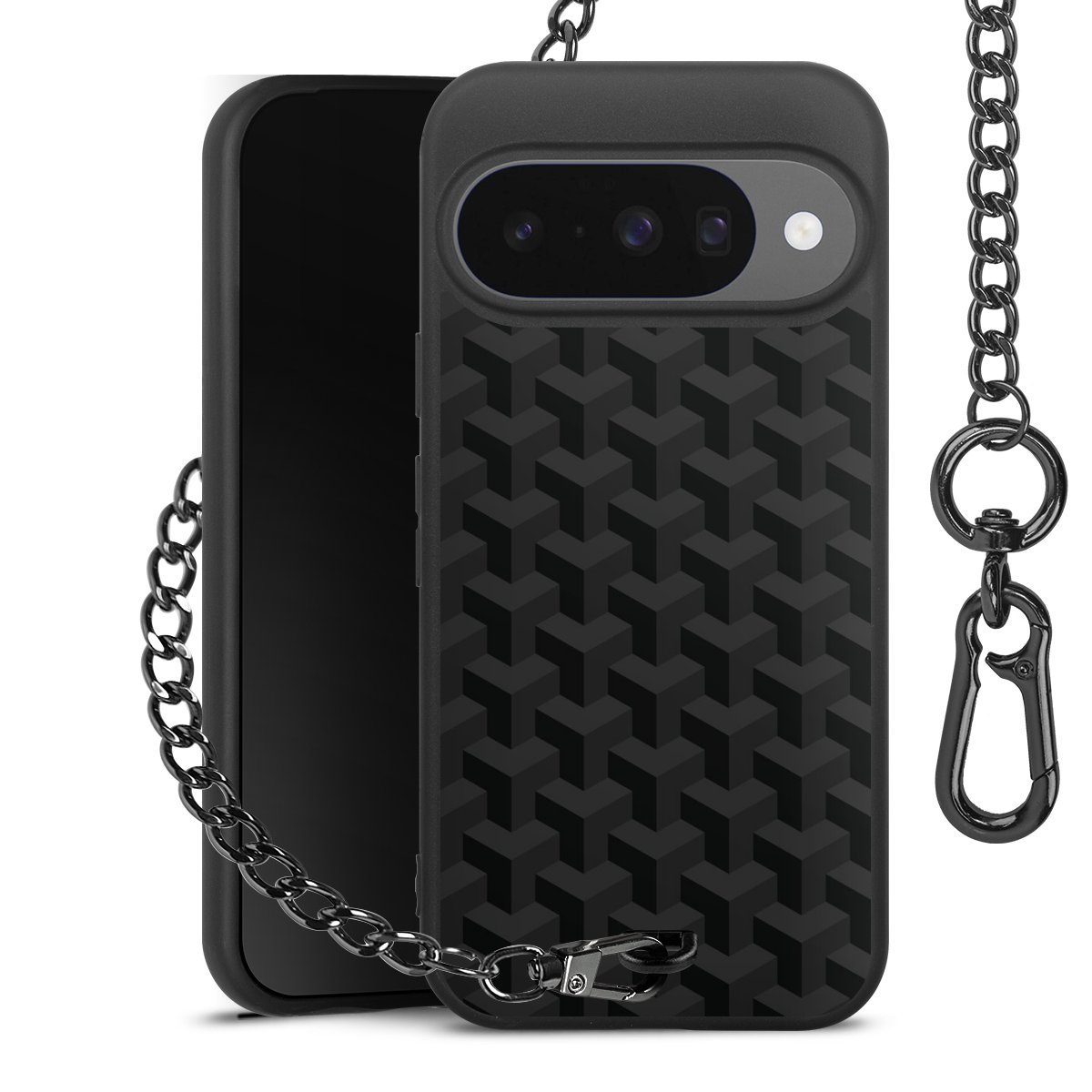 - Mattschwarze Handyhülle mit Metallkette