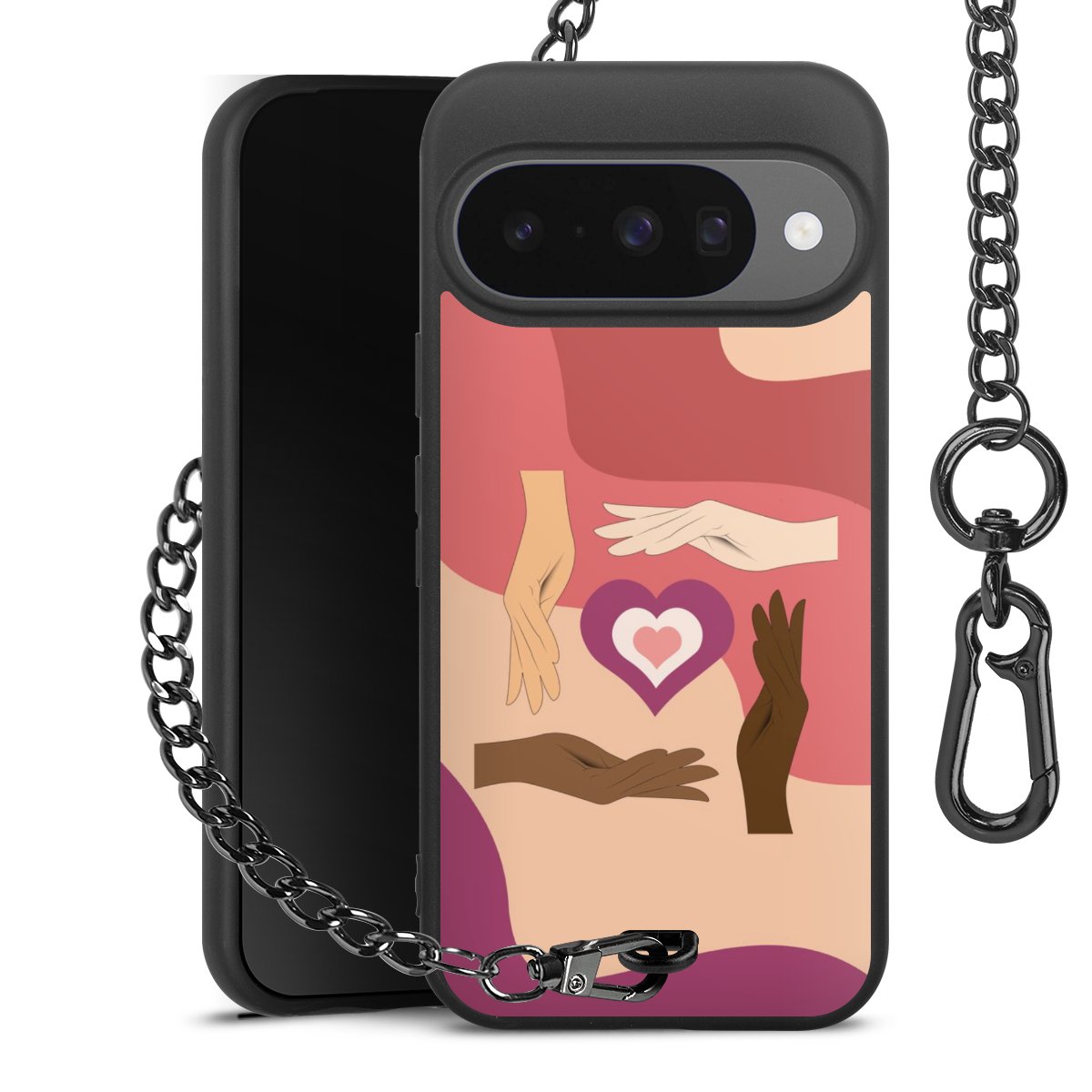 - Mattschwarze Handyhülle mit Metallkette
