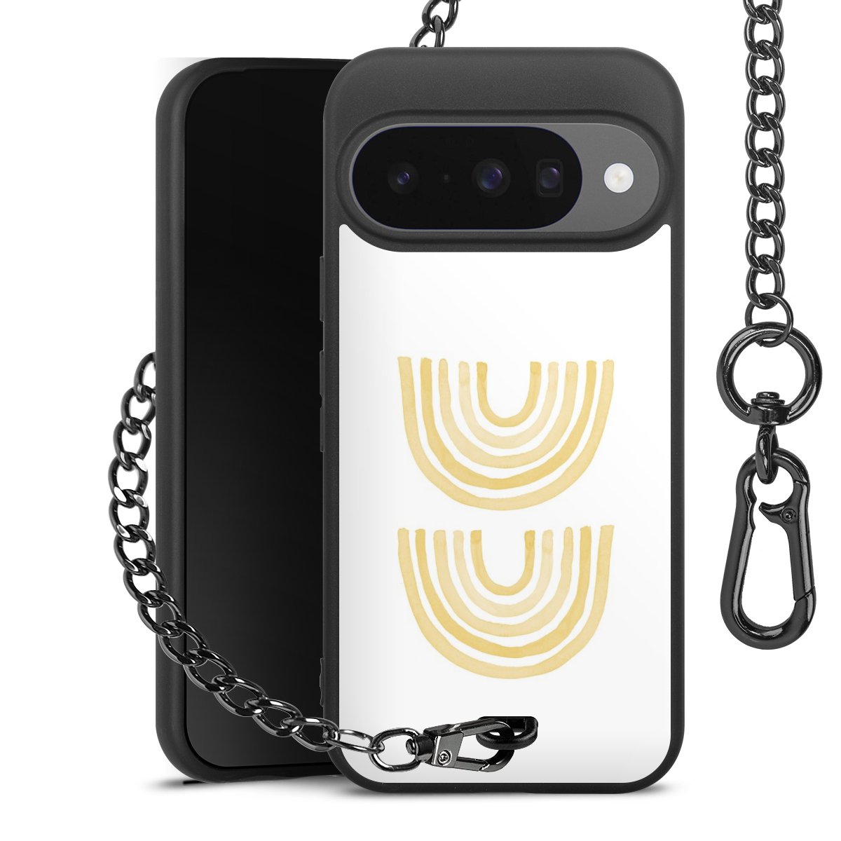 • Mattschwarze Handyhülle mit Metallkette