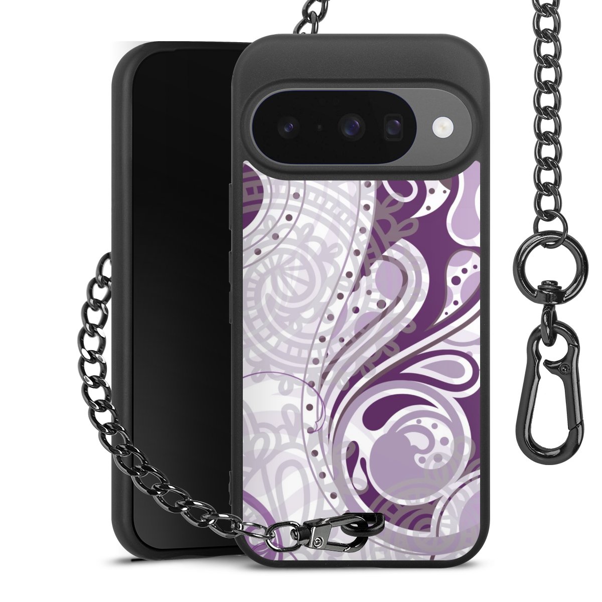 • Mattschwarze Handyhülle mit Metallkette