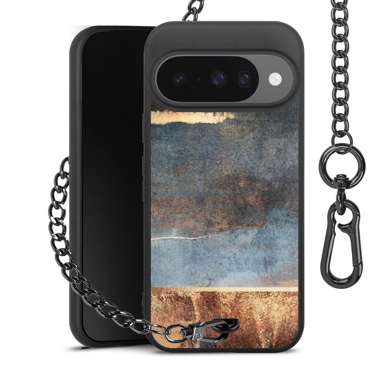 • Mattschwarze Handyhülle mit Metallkette