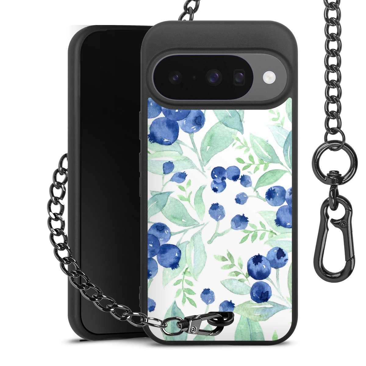 • Mattschwarze Handyhülle mit Metallkette