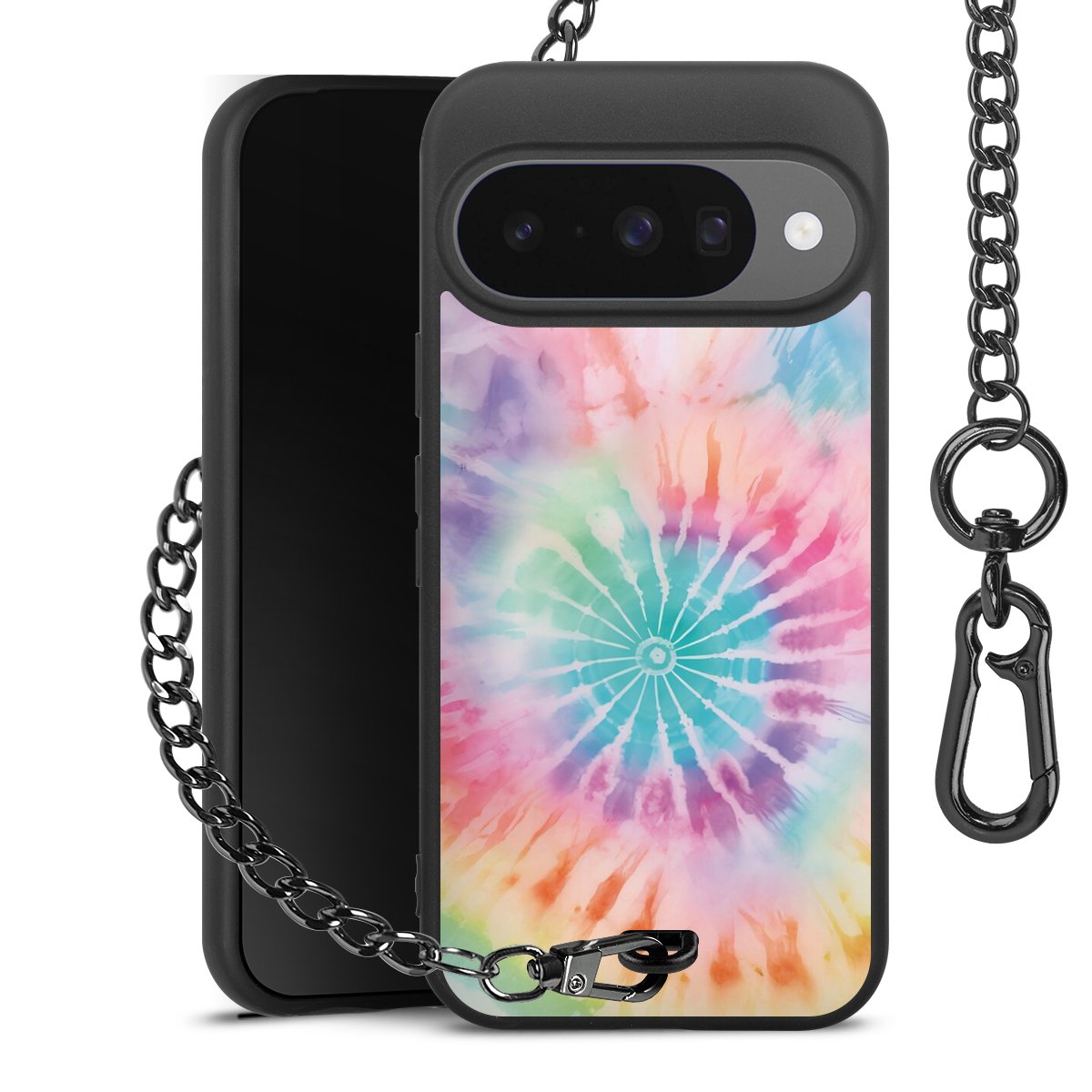 • Mattschwarze Handyhülle mit Metallkette
