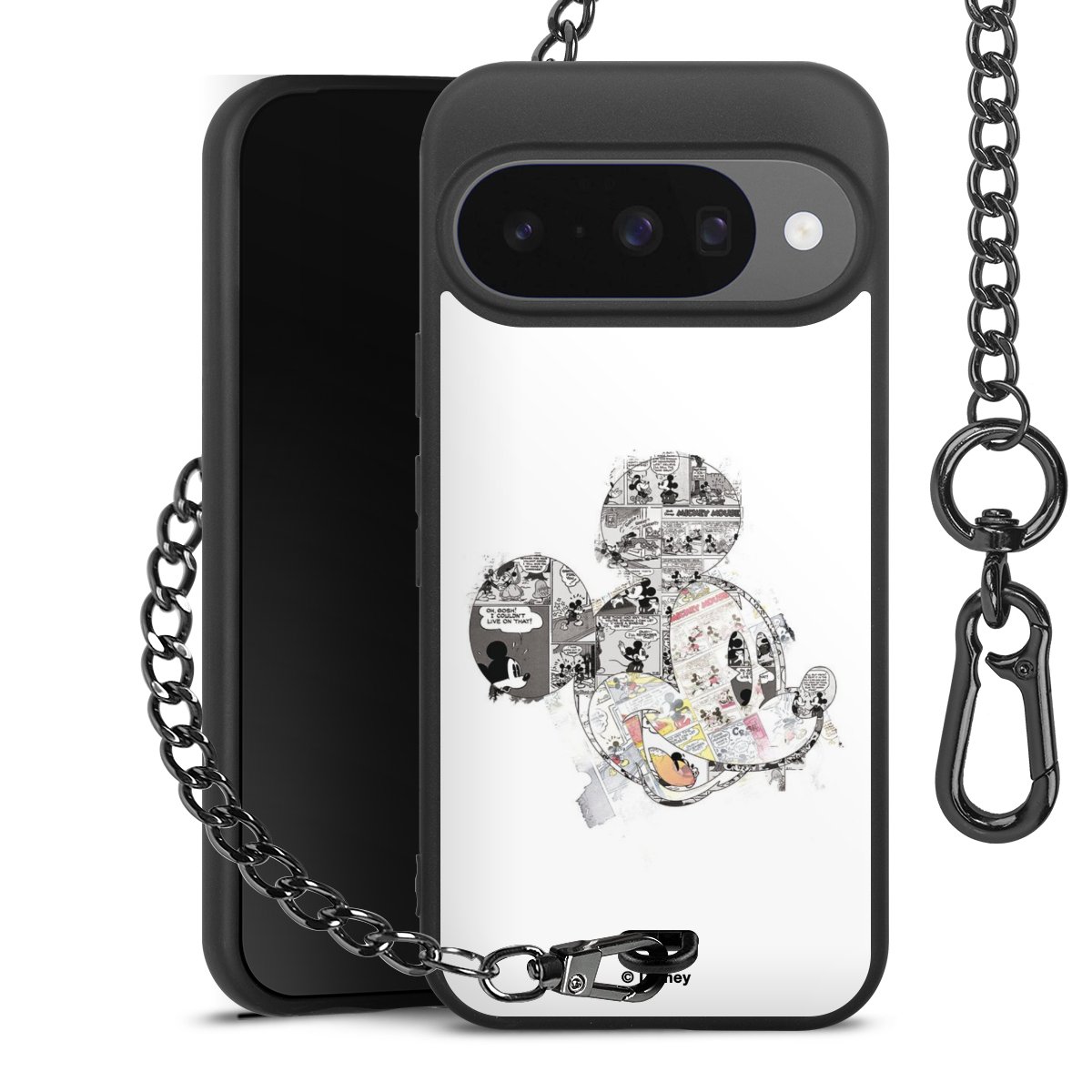 • Mattschwarze Handyhülle mit Metallkette
