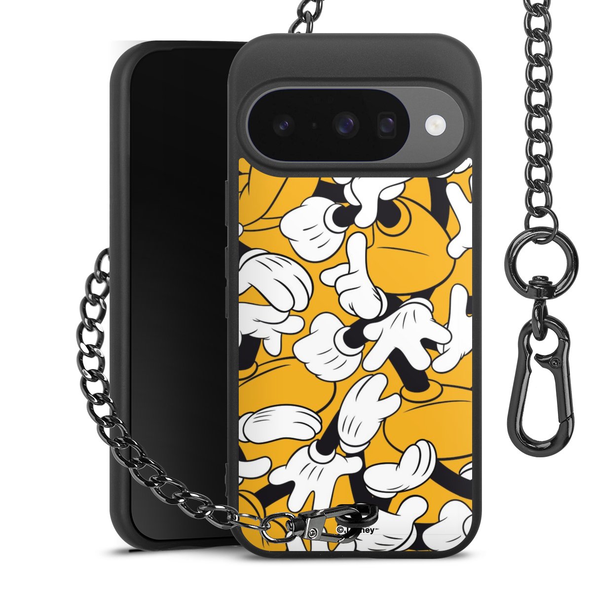 • Mattschwarze Handyhülle mit Metallkette