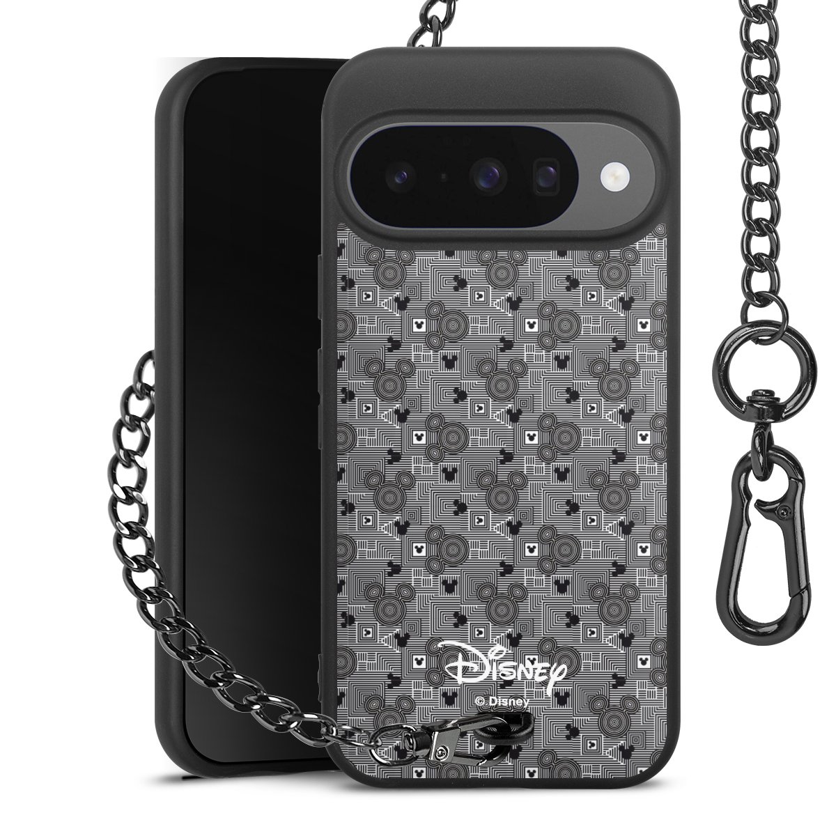 • Mattschwarze Handyhülle mit Metallkette