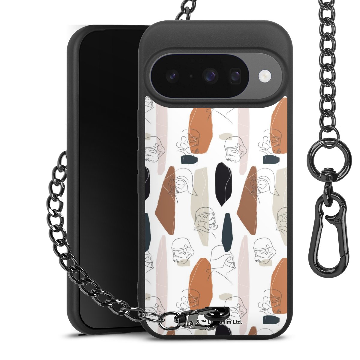 • Mattschwarze Handyhülle mit Metallkette