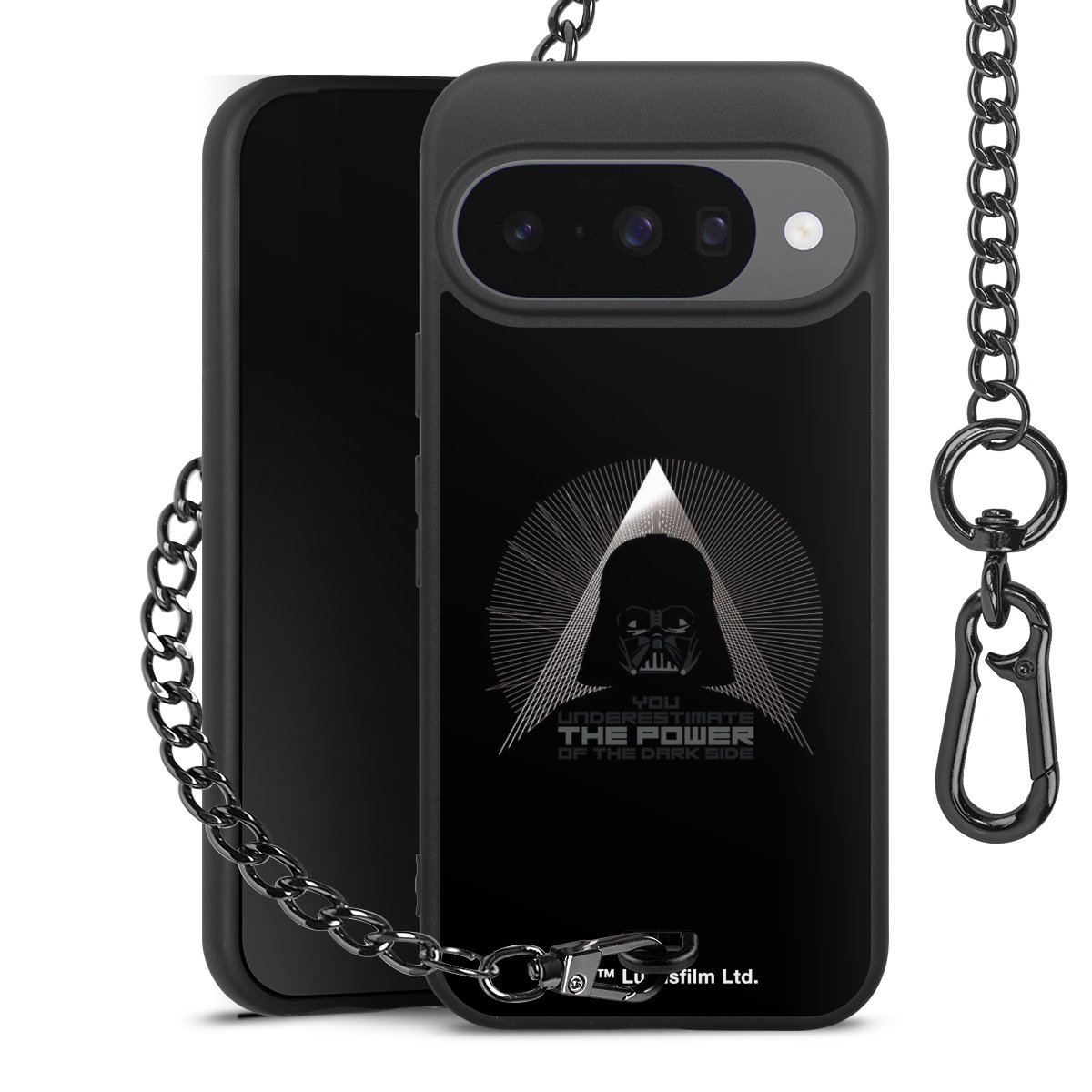 • Mattschwarze Handyhülle mit Metallkette