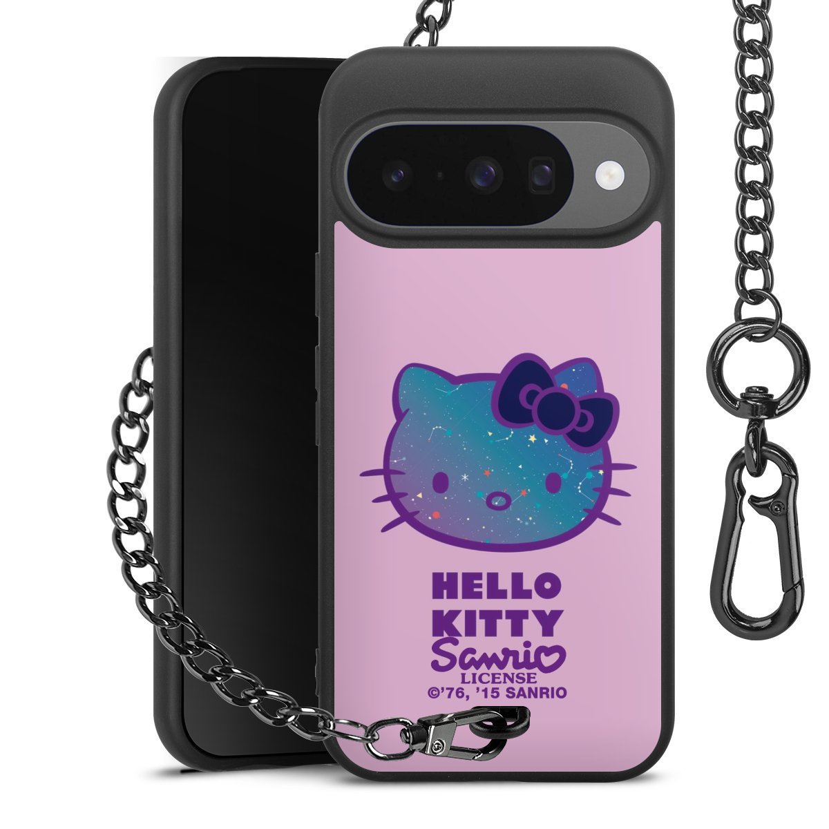 - Mattschwarze Handyhülle mit Metallkette