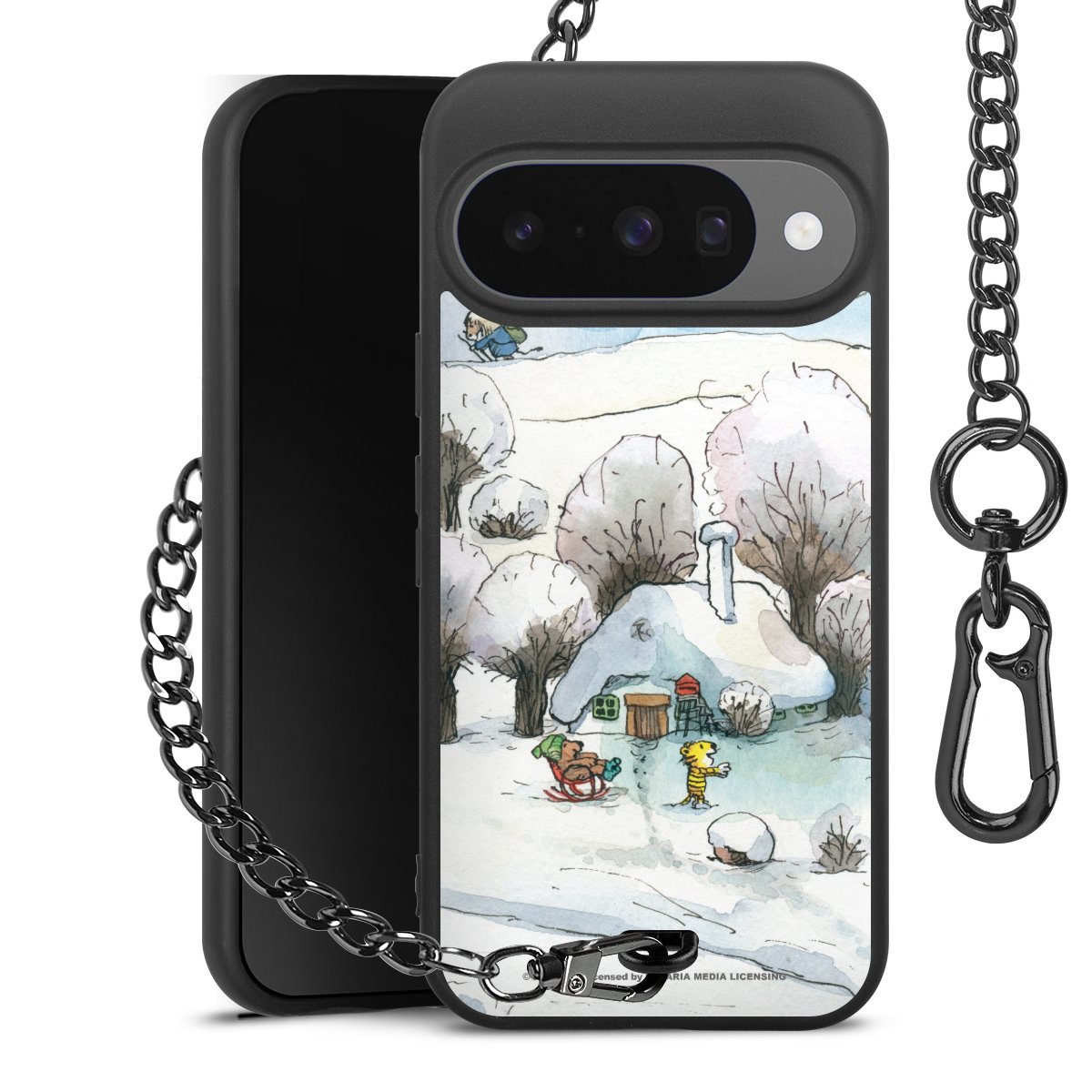 • Mattschwarze Handyhülle mit Metallkette