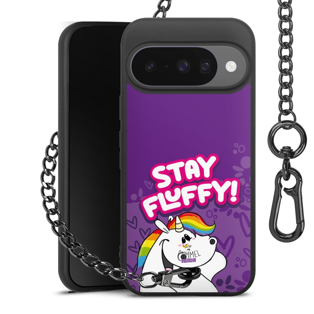 Die mattschwarze Silikon-Handyhülle besteht aus robustem TPU (thermoplastisches Polyurethan). Sie ist flexibel und schützt Dein Smartphone vor Stößen und Kratzern. Die Kette sowie der Karabinerhaken sind aus Metall in Gunmetal-Optik gefertigt. Für dieses Produkt kommen ausschließlich TÜV-geprüfte Materialien zum Einsatz.