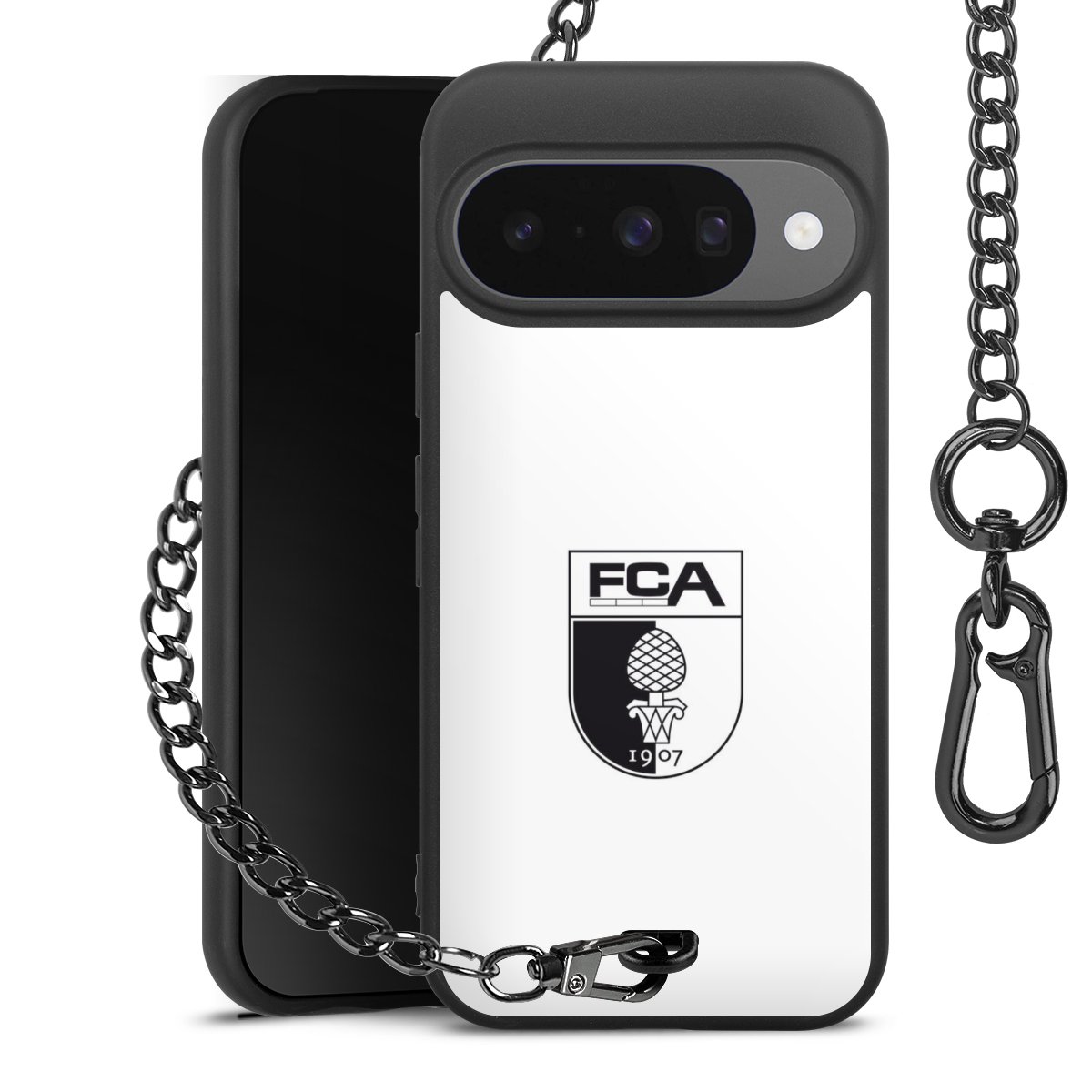 • Mattschwarze Handyhülle mit Metallkette
